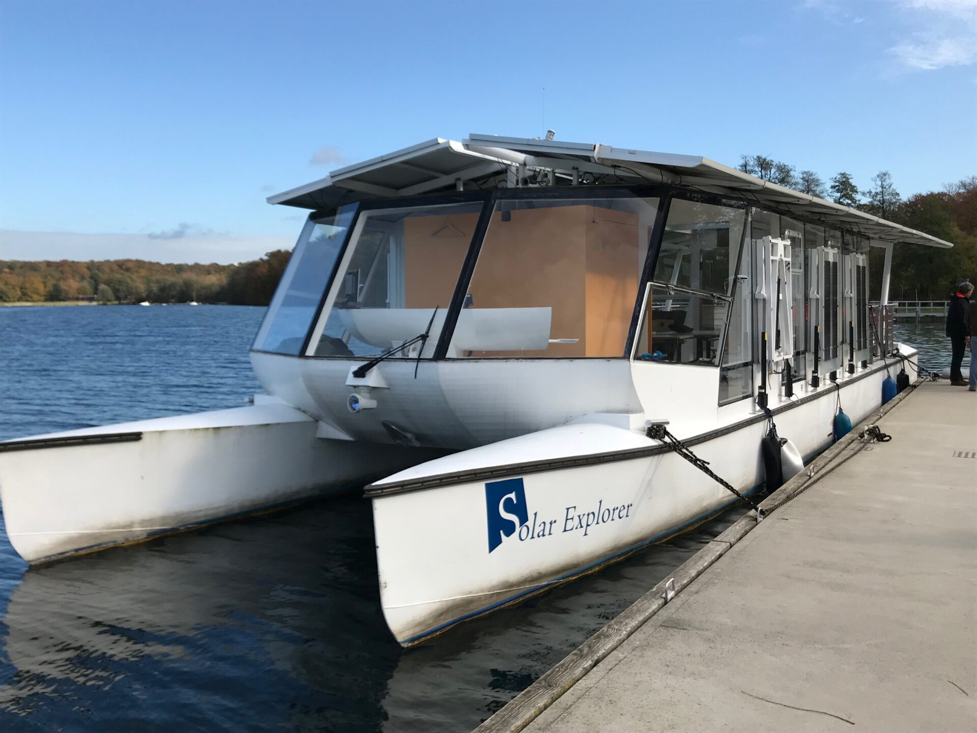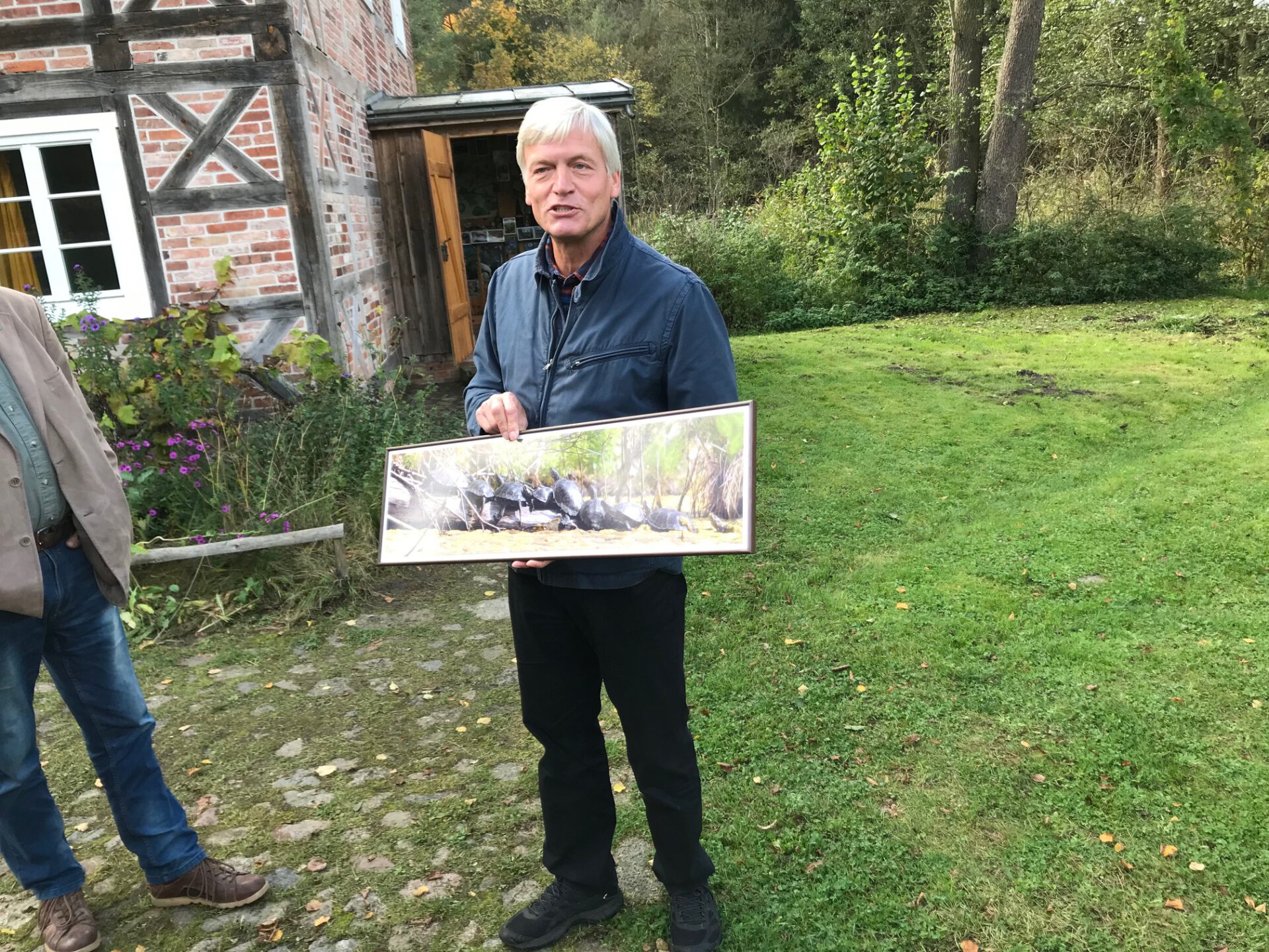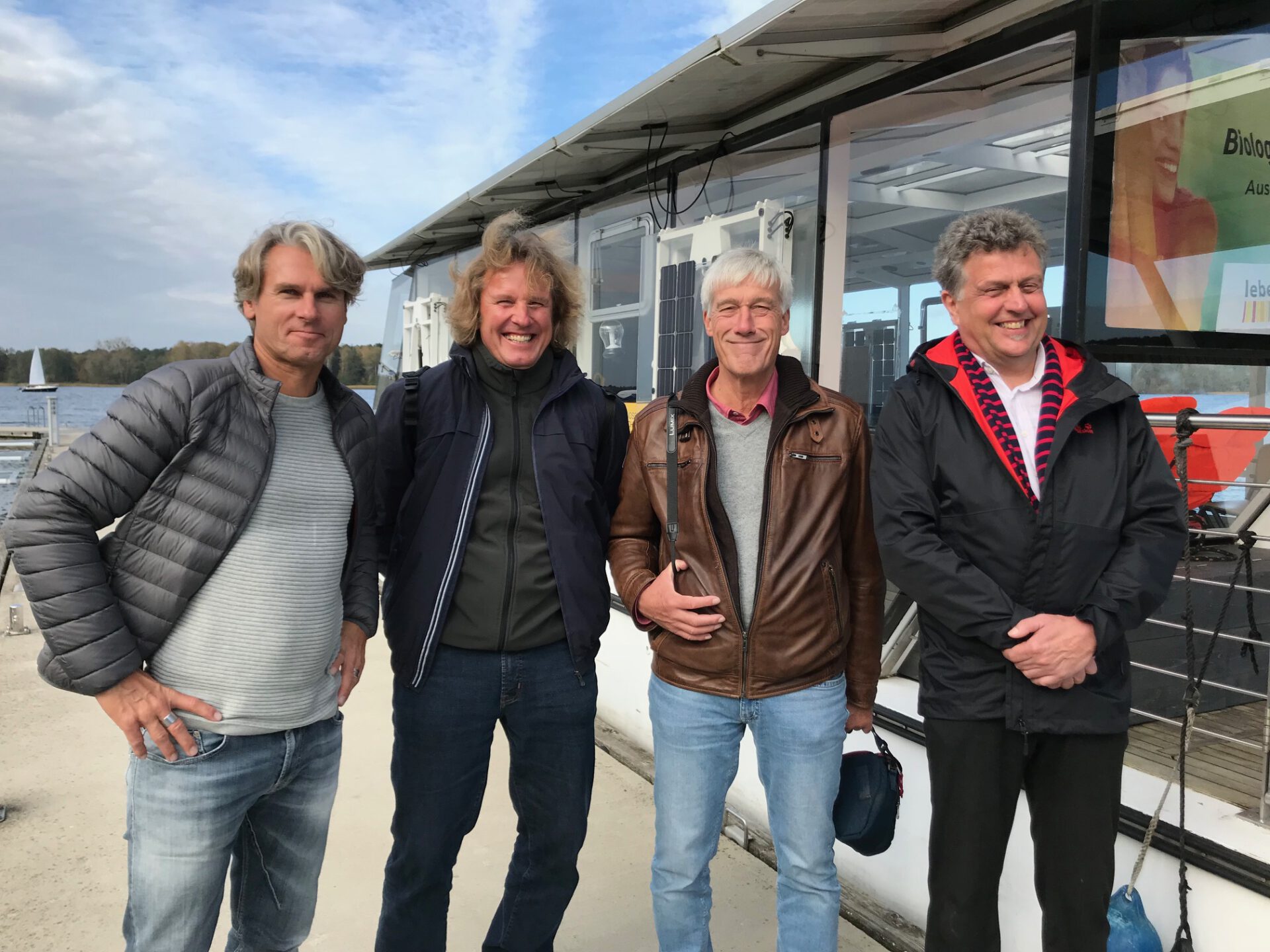 Tag 3: Fahrt zum Werbellinsee (Landkreis Barnim) und Besichtigung der Solar Explorer (solares Forschungsschiff), anschließend Weiterfahrt zu unserer Wassermühle (Aufzuchtstation für bedrohte Tierarten), um geladene Gäste (Herren Dr. Eberhard Henne – ehemaliger Umweltminister von Brandenburg und Leiter Biosphärenreservat Schorfheide-Chorin, Klaus Dürkop – ehemals Präsident NABU Deutschland, Dr. Norbert Schneeweiß und Frau Dr. Fanke – beide Agena e. V.) zu empfangen und über die frisch zugegangene Baugenehmigung des Landkreises Prenzlau zur langfristigen Sicherung des Mühlendammes (Dammsanierung plus höhere Wasserstauhaltung) zu informieren.