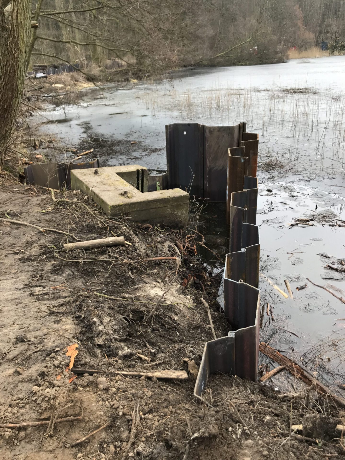 Endlich, nach 20 (!) Jahren Blockade-, Verhinderungs- und Verzögerungspolitik durch das Biosphärenreservat Chorin-Schorfheide (kurz: BR), ist es der KSS nunmehr möglich, den Mühlendamm gegen den Biber durch Spundwände zu sichern. Gleichzeitig bekam die KSS die Genehmigung eine eingestürzte Sohlgleite wiederherzustellen – verbunden mit einem erhöhten Aufstau des Mühlenteichs auf 48,90 m NHN (zuvor 48,60 m NHN).